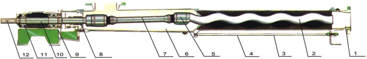 By the motor, coupling, pump and the base of four parts,Pump power using Y series three-phase asynchronous motor. Coupling with the pump with a claw type flexible coupling. Pump comprises a pump shell, a hollow shaft, universal joint rotates about the axis, screw and bushing and shaft seal device and a material outlet, the section of the screw round, the surface is double helical surface.