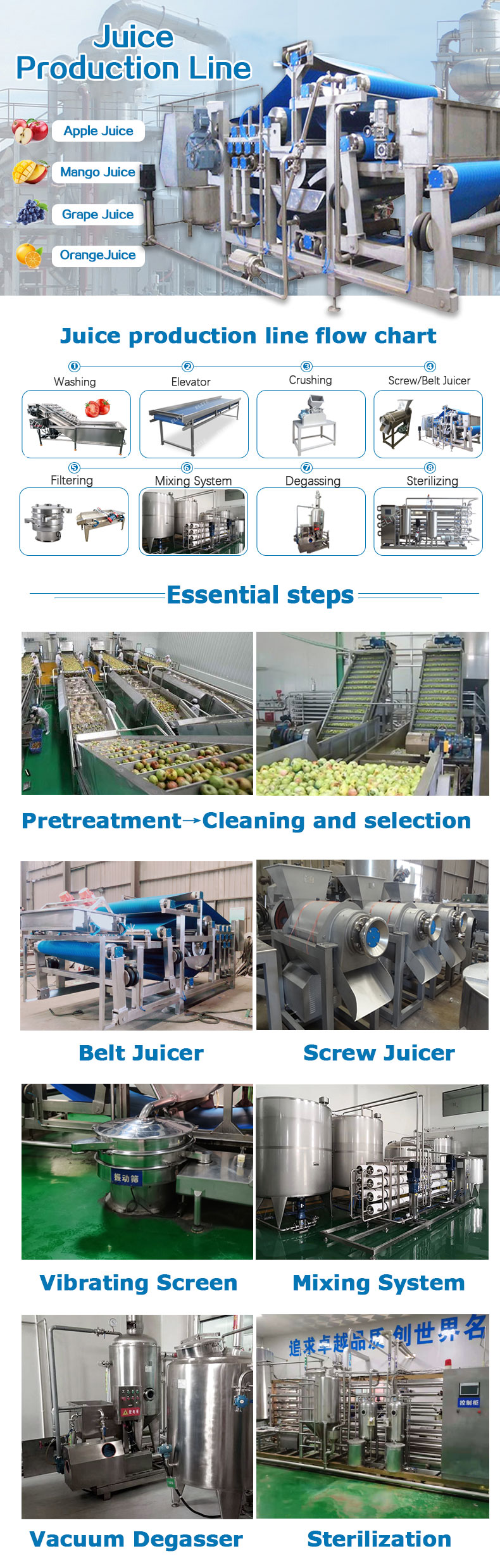 If you have any questions about Fruit juice production line,please don't hesitate to contact us at any time. We will provide detailed information and technical support about the features, specifications, solutions and customization options of pharmaceutical processing equipment for fruits and vegetables... Welcome you to visit our factory!