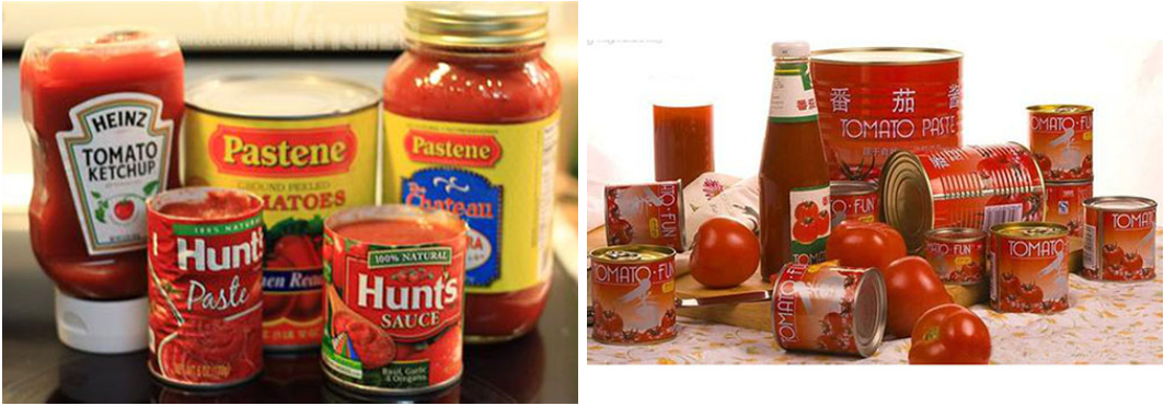 Tomatoes are usually processed for paste and the processing line mainly includes five parts: fresh tomato receiving, pre-washing and sorting section; extracting section; concentrating section; pasteurizing or sterilizing section; aseptic filling section. It is mainly composed of discharge system, hydraulic convey system, bucket elevating, washing and sorting system, crushing system, pre-heating system, pulping and refining system, evaporating& concentrating system, sterilizing system, aseptic filling system. Tomato paste in aseptic drum can be further processed to ketchup, sauces, juices in tin can/bottle/pouch, etc.